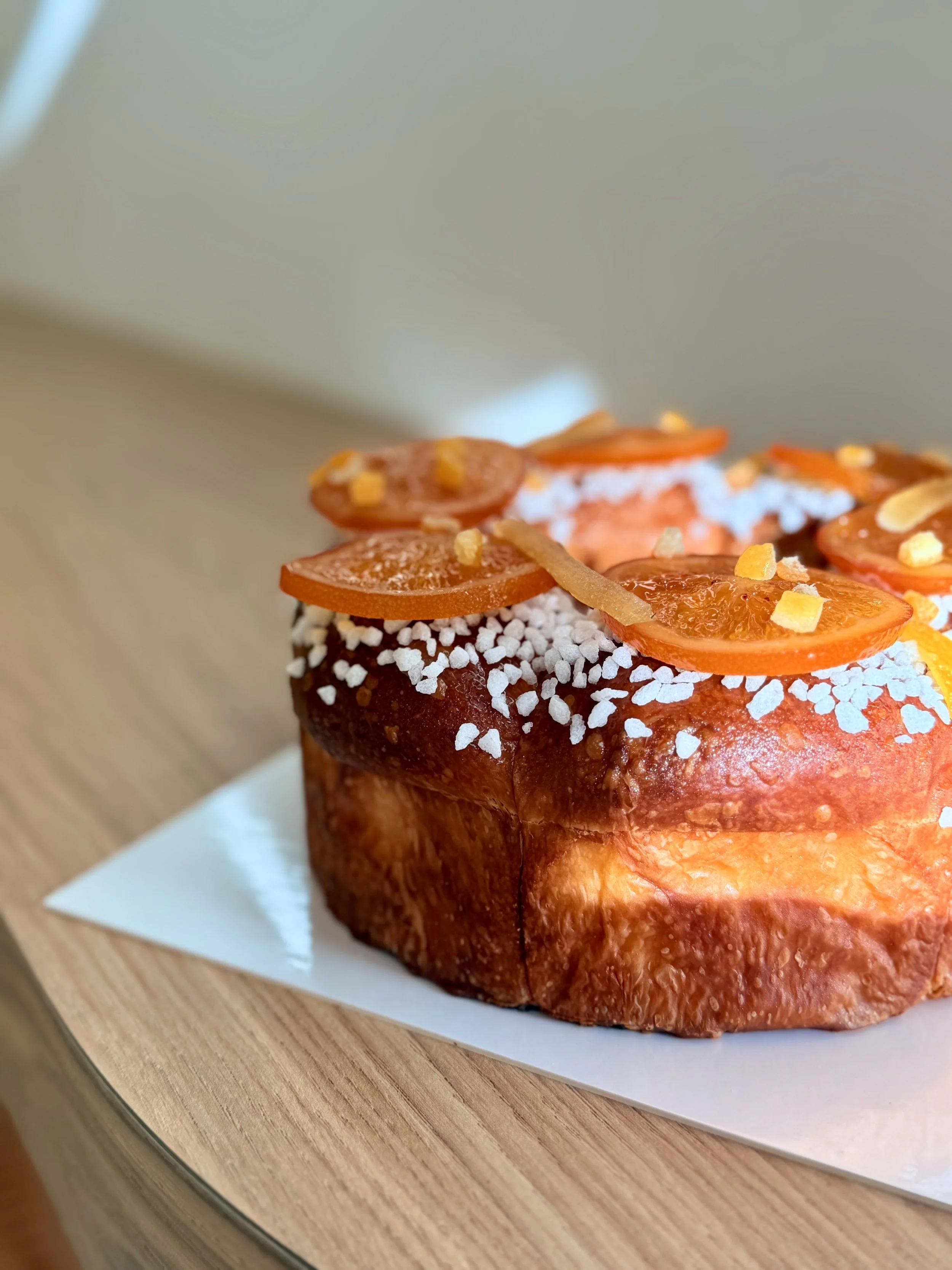 BRIOCHE moelleuse à l’eau de fleur d’oranger, agrumes confits (orange, citron, yuzu)