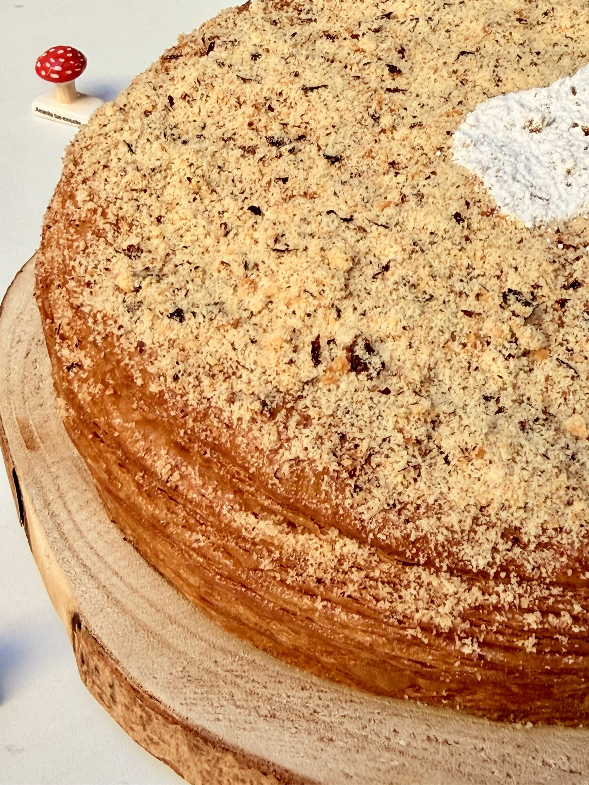 Pâte feuilletée inversée pur beurre, frangipane amande, sirop vanillé